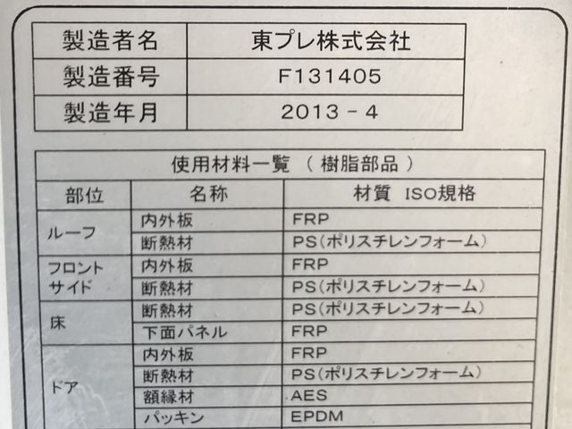 Idling Stop DPDs/w Seats/Interior Faded Luggage Room Dirt/Dents/Scratches Body Matte/Dirt Left Back Box Concealed Paint Engine Rear Oil Stain Gate Frame Height: 180cm Engine oil stainsinterior medium color fadeinterior light dirtSheet Fadingdoor trim A F window small stone chipinner trunk box U inner trunk box A Sign removal paint marksExterior sign markmud guard X PS PW 110kW Topre Refrigeration Unit F131405 (Made in April 2013) -5℃ (Confirmed) Standby (Cable missing) Left-hand sliding door, rear cabinet, Stainless steel floor, Jolder rail x2, Rashing rail, 2-tier, Mirrored back panel, Monitor